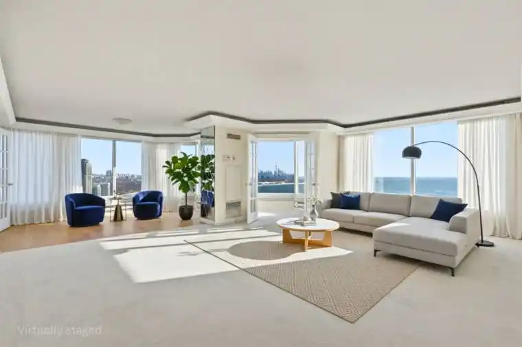 Panoramic Lakefront Luxury, Three Views Wide – East, South, and West!A true Palace Place signature suite: 2,028 sq ft of refined space, a rare 2-bed/3-bath layout, 2 parking and 2 lockers, anchored by what many consider the best floor plan in the building. This is the kind of home that makes you stop mid-sentence. Wraparound picture windows frame unobstructed Lake Ontario from three directions: downtown + lake to the east, open water straight south, and lake + Mimico skyline to the west. Morning light, golden afternoons, and sunset glow -every day has a different mood. The living and dining areas are expansive and naturally elegant, finished with classic crown moulding and tray ceilings, and designed for both entertaining and quiet, private moments. A bright, view-filled kitchen with stone counters and an oversized island keeps the backdrop front and centre-water, sky, and city. The primary suite delivers the same wow factor, complemented by a generous ensuite where the lake becomes part of your morning routine. All of this, in a building known for service and lifestyle, valet, concierge, private shuttle, and resort-style amenities. Schedule your private showing today and experience Suite 3203 in person.