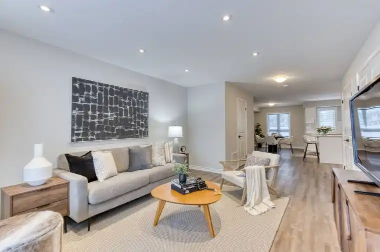 Step Into This Bright And Stylish Home Offering An Open-Concept Layout And A Mostly Carpet-Free Design, With Carpeting Limited To The Stairs. Sun-Filled Rooms Are Enhanced By Large Windows Throughout, Creating An Inviting And Airy Atmosphere. The Heart Of The Home Is The Beautifully Upgraded Kitchen, Featuring Quartz Countertops, Soft-Close Cabinetry, A Timeless Subway Tile Backsplash, And A Large Island Perfect For Entertaining Or Casual Family Meals. A Full Suite Of Stainless Steel Appliances Completes The Space. The Living Room Is Accented With Modern Pot Lights, Adding Both Style And Ambiance. This Home Also Features 3 Generously Sized Bedrooms And 2.5 Bathrooms, Including A Private Primary Ensuite Designed For Comfort And Convenience. Ideally Located Close To Highway 401, Schools, Parks, Scenic Trails, And Shopping, This Home Delivers The Perfect Blend Of Modern Living, Comfort, And Everyday Convenience.
