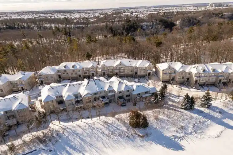 Perfectly positioned within the Ballantry built exclusive enclave of Winding Creek Cove, this turn-key executive townhome offers a rare blend of low-maintenance luxury, versatile space (2810sqft) & exceptional privacy. Backing onto greenspace & a tranquil pond with no rear neighbours & surrounded by the 16 Mile Creek Trail network. Moments to the Oakville Hospital, major transit (QEW, 403, 407, William Halton Parkway, GO Train), golf (Oakville Golf Club, Glen Abbey) & the new Neyagawa Community Centre, the location provides both exclusivity & convenience. This is a well managed upscale condo townhouse community that places an emphasis on prudent upkeep & improvements. The consistency of quality construction & ongoing maintenance differentiates Winding Creek Cove. The community’s calm, upscale environment naturally appeals to empty-nesters, professionals, couples & singles. Since last listed: improved price, new deck with aluminum railing & announced community wide internet & TV plan (approx $100-150/mnth in savings).200k+ in upgrades inc. appliances & HVAC. Highlights include light filled living room featuring hardwood, crown moulding & a designer feature wall with Valor gas fireplace & quartz surround. The custom kitchen anchors the main floor, with stainless steel KitchenAid appliances, quartz counters & peninsula with bar seating. Adjacent breakfast rm provides a walkout to the new deck. Entertainer’s dining rm features tasteful sconce lighting, transom-style windows & coffered ceiling. Generous primary suite features two walk-in closets, wall of built-ins & pond views. Lux ensuite with quartz counter vanity, separate tub & shower overlooking greenspace. Two additional large bedrooms, main bath & convenient laundry rm complete the upper level. Above-grade lower level with bright rec rm, high ceilings, California shutters & walk-out to patio, plus garage entry & 2pc bath. Private double driveway & garage (6 parking). Upgrade list via virtual tour link. Perfect!