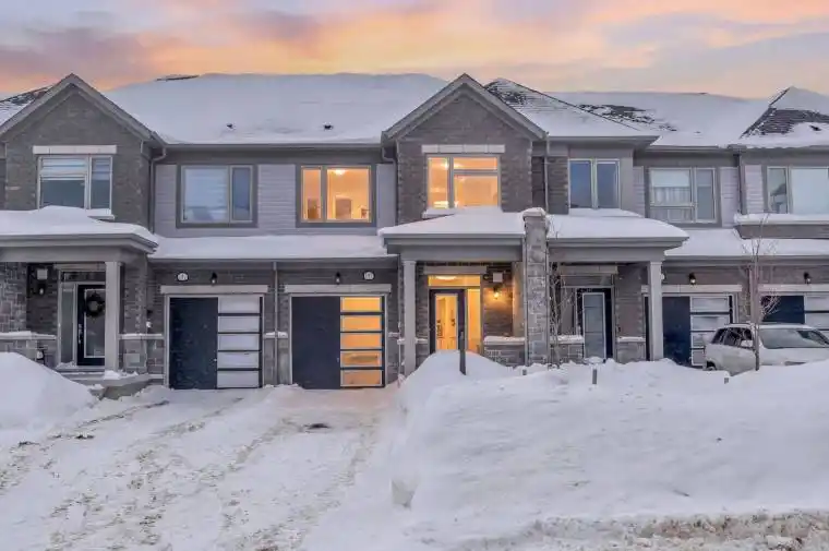 Welcome to 197 Farley Road, a well-designed freehold townhome located in the desirable Storybrook community of Fergus. This modern two-storey home offers approximately 1,742 sq. ft. of finished living space with three bedrooms and three bathrooms, providing a practical layout suited to everyday living. The main floor features a bright, open-concept design anchored by a contemporary kitchen with ample cabinetry, a large centre island, and quality finishes throughout, flowing seamlessly into the main living area. Upstairs, the primary bedroom includes a walk-in closet and a private four-piece ensuite, while two additional bedrooms share a full main bath. Upper-level laundry adds everyday convenience, and the unfinished basement offers excellent potential for future living space with existing rough-ins already in place. Exterior highlights include attractive brick and stone finishes, a covered front porch, and an attached garage with interior access. Ideally located close to schools, parks, trails, recreation facilities, and Groves Memorial Community Hospital, this home offers a low-maintenance lifestyle in one of Fergus’s established newer neighbourhoods.