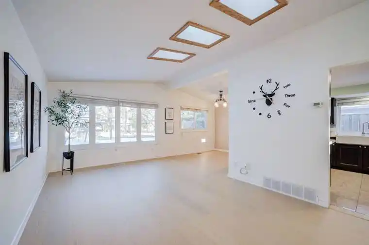 Fully renovated 3-bedroom, 2-bathroom backsplit located in the highly desirable Elizabeth Gardens neighbourhood of Burlington, within the top-ranked Nelson High School catchment. This home features a southwest-facing backyard, carport, and a bright open-concept layout highlighted by soaring vaulted ceilings and three skylights. Enjoy abundant natural light throughout the day in every room. Brand new engineered hardwood flooring (2026) runs throughout the home. The modern kitchen offers dark cabinets, quartz countertops, marble backsplash, and a gas stove. Just a few steps up, the bright primary bedroom provides walkout access to a professionally landscaped garden (2022). The private backyard features mature trees and a newly replaced fence (2024), creating an ideal summer retreat. A few steps down, you’ll find a spacious family room with gas fireplace, a second modern 3-piece bathroom, large storage area, and laundry. The covered carport provides convenient winter protection from snow, and the driveway was newly paved in 2023. Walking distance to elementary schools and top-ranked Nelson High School. Only a 10-minute walk to the lake, Burloak Waterfront Park, and the newly opened Skyway Community Centre, featuring NHL-size ice pad, multi-use indoor track, community rooms and 275-foot baseball diamond. Future growth includes a new Costco location with gas bar around the corner expected in 2027, plus nearby supermarkets, cafés, and restaurants. Ideal opportunity for first-time buyers or downsizers.Updates: Roof & Skylights (14), 3 pc Bathroom (15), Kitchen (13), Furnace (19), Basement (19), Backyard Professional Landscaping (22), Driveway (23), Fence (24), Central Vac (New Motor And Hose 25), Engineered Hardwood Flooring (26).