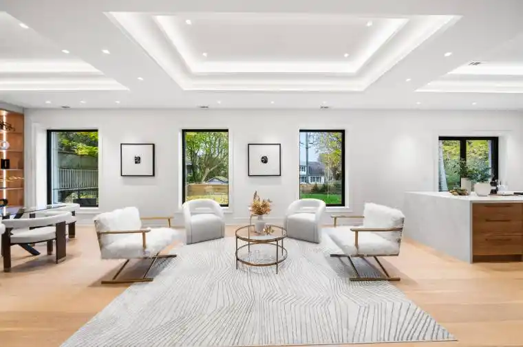 Unbelievable opportunity! This newly custom-built masterpiece sits on a premium 60-ft lot in one of the area’s most desirable neighborhoods, offering exceptional value for quality and craftsmanship. This extraordinary residence blends modern architecture with elegant design, delivering a lifestyle of comfort and sophistication. Every detail has been thoughtfully curated for refined, contemporary living. The impressive main level features soaring 11-ft ceilings, coffered detailing, and halogen lighting that create a bright, airy atmosphere. The great room is a true showpiece, highlighted by a striking slab fireplace wall, custom entertainment unit, and oversized picture windows with serene treetop views. The chef-inspired kitchen is both stunning and functional, offering an oversized waterfall island, stone countertops, premium stainless-steel appliances, and seamless flow to the dining and family areas-perfect for entertaining. Custom glass staircase railings, imported porcelain finishes, and designer lighting add timeless appeal throughout. Upstairs, you’ll find four spacious bedrooms with custom closets and refined finishes. The primary suite is a private retreat featuring a sculpted accent wall, tray ceiling, and a luxurious 7-piece spa-inspired ensuite with floor-to-ceiling porcelain, gold fixtures, and a body-spray shower system. The fully finished lower level is ideal for entertaining or extended family, complete with a wet bar, beverage fridge, stone breakfast bar, fifth bedroom, and full designer washroom. Additional highlights include a video camera doorbell and countless custom upgrades. Enjoy a private, park-like backyard surrounded by mature trees, offering privacy and tranquility. A true showpiece home don’t miss this rare opportunity in today’s market.