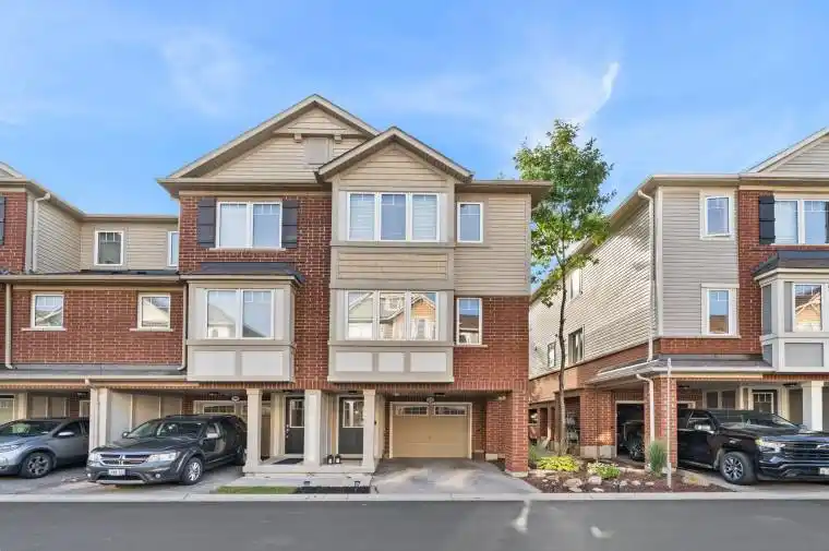 A bright and beautifully positioned end-unit townhome backing onto ravine greenery! A rare layout that feels more like a semi. Flooded with natural light from its many windows, this home offers tranquil views of the Niagara Escarpment. This 3 bedroom, 3 bathroom home features a bright, open-concept living and dining area, the perfect space to relax or entertain. The main floor is finished with hardwood flooring and a beautiful oak staircase. The kitchen is both functional and inviting, featuring quartz countertops, stainless steel appliances, solid wood cabinetry, and a pantry. A rare covered balcony through the kitchen makes BBQing effortless, with easy indoor-outdoor flow. The primary bedroom offers his and her closets and a charming getting-ready nook, ideal for a desk or vanity. Both additional bedrooms enjoy direct access to a bathroom, with upgraded flooring in all the bedrooms, renovated second-floor bathrooms, and plenty of storage throughout the home. The main level also features a cozy backyard, a rare bonus and the perfect private outdoor space to unwind. Conveniently located near schools, parks, grocery stores, Milton District Hospital, Milton GO, Wilfrid Laurier University Milton Campus (coming soon), Rattlesnake Point, Sherwood Community Centre, and the future Tremaine Rd 401 ramp (Fall 2026). A peaceful setting, a hard-to-find layout, and a home that truly doesn’t come up often.