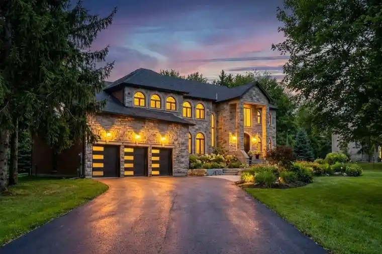 Masterfully built in 2021 on a 2.4-acre Gated Estate in Prestigious King , welcome to a Marvel of Modern Construction. Offering over 7,500 Sq ft of refined luxury living (5800 SQ.FT+2950 SQFT). A long, tree-lined approach unveils a residence defined by natural stone and brick masonry, balanced proportions, and striking architectural presence. Soaring two-storey 20-ft ceilings crown the grand great room, creating a dramatic yet elegant setting for entertaining. The chef’s kitchen anchors the home with a quartzite island, premium built-in appliances, dual cooktops and ovens, and an oversized walk-in pantry. Each bedroom features a private en-suite, including a main-floor suite, designed for seamless multi-generational living. The upper primary retreat offers a spa-inspired en-suite and bespoke dressing room. The finished lower level, with 12-ft ceilings and golf simulator rough-in, adds exceptional lifestyle flexibility. Notable upgrades include dual HVAC systems, radiant floor heating, spray foam insulation, and a tankless water system. A 3-car garage, heated 30×30 workshop, and expansive two-tier deck complete the estate. Minutes to Hwy 400, top private schools, and amenities-an enduring legacy property defined by craftsmanship, privacy, and location.