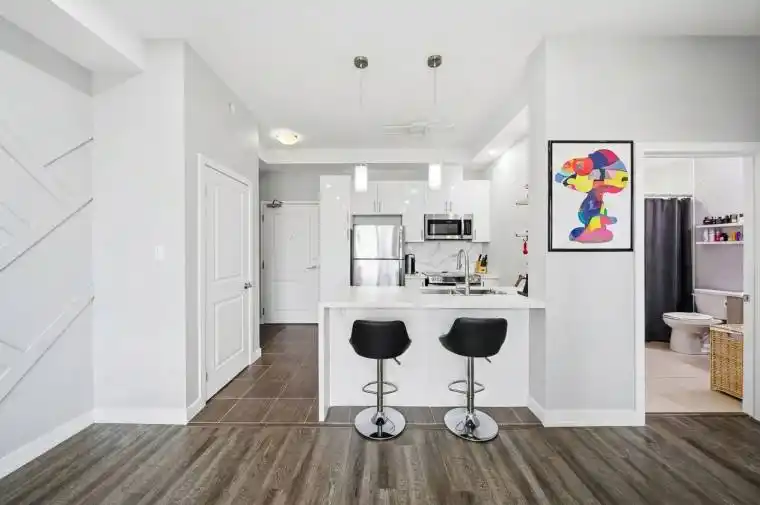 Penthouse living with privacy, light, and views. Situated on the sixth floor with no unit above, this upgraded suite offers added quiet, better natural light, and elevated sightlines. Enjoy lake views from the balcony with peaceful ravine exposure for a rare blend of nature and convenience. Thoughtfully updated throughout, the interior features a custom kitchen with a waterfall island, upgraded cabinetry, designer lighting, pot lights, and modern feature walls. The open concept layout is bright, functional, and completely turnkey. Includes parking and a locker. Steps to the beach, waterfront trails, parks, wineries, and everyday amenities, with the new GO Train expansion coming for even easier commuting. One of the most upgraded and desirable suites in the building. A rare penthouse lease opportunity that truly stands out.