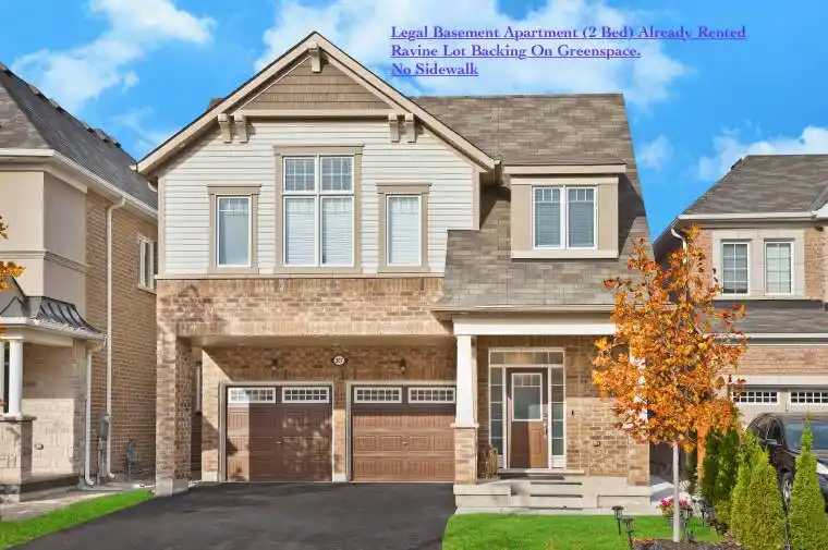 ***LEGAL BASEMENT APARTMENT*** RAVINE LOT backing on to GREENSPACE***No Side Walk***. The famous “Woodstock Model” featuring modern and practical layout. Welcome to this beautiful, bright & sunny 4+2 Bed Fully Detached Home That Ticks All The Boxes. A true pride of ownership with numerous upgrades like 9′ ft Ceilings on main floor, Tall Door Package, Wainscotting, Crown Moulding, fancy LED Lighting, Gas Fireplace, Gorgeous Jenn Air Stainless Steel Appliances. The legal basement apartment is already rented for $1800 plus 35% utilities & tenants are willing to stay.