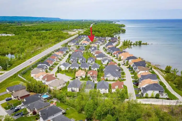 Exceptional waterfront living on the shores of Georgian Bay with a view to the water! Thoughtful design and EXTENSIVE upgrades invite all potential buyers~ full time residence, vacation home or family living. This meticulously maintained home offers over 2974 sq. ft. of refined finished living space, ideal for everyday comfort and entertaining. The main level features a spacious primary bedroom with a 5-piece ensuite, jet tub and glass shower, plus a second bedroom/ den with ensuite privileges to a 4-piece bath. Soaring cathedral ceilings enhance the great room and foyer, while the open-concept kitchen, dining, and living areas showcase a large island, granite countertops, stainless steel appliances, gas fireplace, and expansive windows that flood the home with natural light. Walk out from the family room and primary suite to a new composite deck (14.8 X 19.7) with glass railings (2024), overlooking a fully fenced yard. Additional highlights~ main-floor laundry, a whole-home generator, high tech camera security system, double-car garage with inside entry and mezzanine for all of your storage needs. The second level offers an additional primary suite with a 4-piece bath, walk-in closet, and a versatile loft/flex space overlooking the living area. The fully finished lower level includes a spacious family room/ cozy gas fireplace, two large bedrooms, and a 4-piece bath with steam shower. Residents enjoy access to a private clubhouse featuring a recreation center with social activities, fitness area, inground saltwater pool and a large covered waterfront deck capturing stunning Georgian Bay views. Worry free community living~ snow removal and lawn services included for your convenience. Embrace the Four Season Lifestyle~ Amenities Just Minutes Away~ *Blue Mountain Village *Historic Downtown Collingwood~ Dining, Shopping, Cultural Events *Championship Golf Courses *Wasaga Beach~ Longest Freshwater Beach. View Virtual Tour~ Experience the Magic of Southern Georgian Bay!