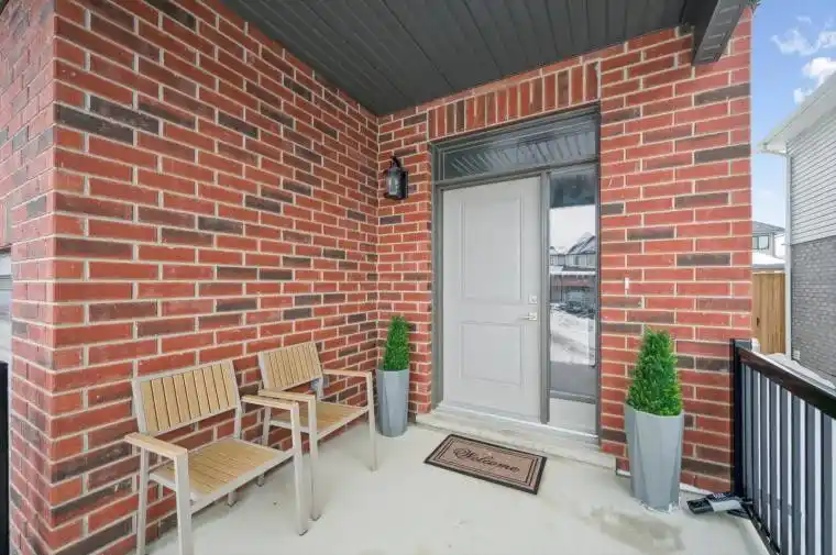 Exceptional 1746 sq. ft., semi-detached home in the highly sought-after Southwood Park community. Only three years young and extensively updated, including upgraded light fixtures and remote controlled blinds, this 3 bedroom, 2.5 bathroom home plus den offers refined finishes and a functional layout – perfect for modern family living. The bright eat-in chef’s kitchen is the heart of the home, featuring a large island, quartz countertops, and a timeless subway tile stone backsplash – ideal for family gatherings and entertaining. The inviting living room is anchored by a gorgeous fireplace, creating a warm and elegant space to unwind. Upstairs, the spacious primary suite includes a luxurious en suite, while the additional bedrooms and den provide flexibility for growing families or a home office. The unspoiled basement with full bathroom rough in, large windows and smart layout offers endless potential to customize your future living space. Enjoy a great yard, excellent schools, and a walkable lifestyle with nearby parks and nature trails, all just minutes from Waterloo. A perfect blend of upscale living, family comfort, and small-town charm with big-city convenience.