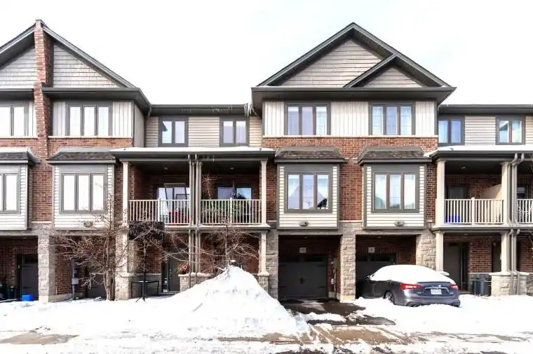 Stunning 3-storey condo townhome in the highly desirable Waterdown community offering 3+1 bedrooms, 3.5 washrooms, 2,151 sq ft of living space, and just 7 years new. This elegant brick and stone home features a spacious foyer leading to a private main-level bedroom with a full washroom, ideal for guests, in-laws, or a home office. The chef’s kitchen boasts a central island, stainless steel appliances, stylish backsplash, and ample cabinetry, flowing seamlessly into a bright open-concept great room with laminate flooring, 9-ft ceilings, pot lights, and space for a large dining table-perfect for entertaining. Step out onto the generous balcony for relaxation and fresh air. The third floor offers three spacious bedrooms, two full washrooms, and a convenient laundry area. A fantastic opportunity for first-time home buyers to own a modern, move-in-ready home in one of Waterdown’s most sought-after neighborhoods-don’t miss out!