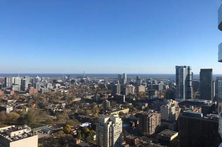Sunrise views, soaring light, and city living at its best. Perched high on the 39th floor, this must-see one-bedroom condo is flooded with natural light and showcases unobstructed east-facing views that make every morning feel a little brighter, even in the depths of winter. Step out onto the generous balcony and take in the expansive skyline, the perfect extension of your living space. Inside, enjoy a smart and highly functional 448 sq. ft. layout, the largest one-bedroom floor plan in the building that features a true bedroom and not an interior glass-walled design. Modern finishes, and an efficient use of space throughout. Set in an unbeatable location directly across from Loblaws and just a 4-minute walk to College Subway Station, convenience is truly at your doorstep. Ideal for professionals seeking light, views, and effortless city living.