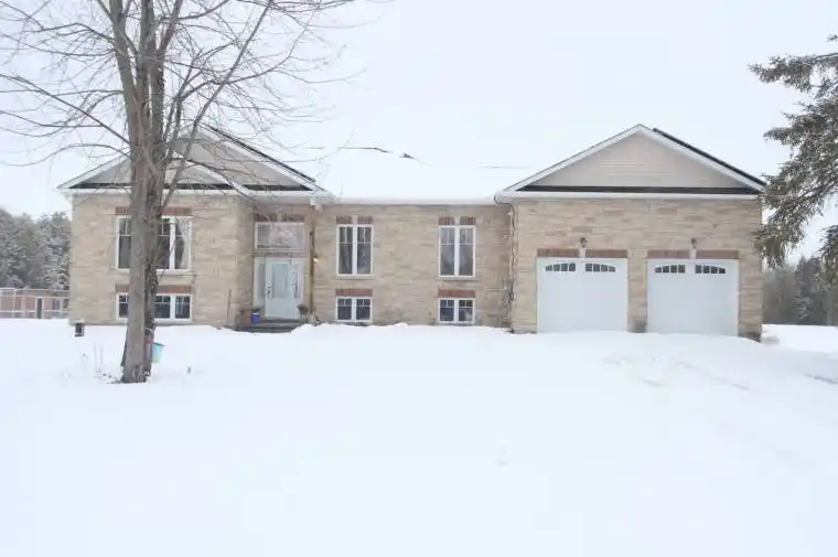 Set on a stunning 10.15-acre parcel, this beautifully crafted 10-year-old custom raised bungalow offers approximately 2,200 sq ft of thoughtfully designed living space in an exceptionally private and peaceful setting. A picturesque stream meanders through the rear of the property, attracting abundant wildlife and creating a truly serene backdrop. Inside, the open-concept kitchen and living area features a striking cathedral ceiling, a central island, and a walkout to the covered rear deck – perfect for entertaining or relaxing while enjoying the natural surroundings. Hardwood flooring flows throughout the home. The layout includes a formal dining room and a spacious primary bedroom complete with a 3-piece ensuite. The unfinished basement, with its above-grade windows, provides excellent potential for future expansion. A convenient laundry room offers direct access and a walkout to the attached double-car garage. Approximately 3-4 acres surrounding the home are cleared and maintained, while the remaining 6 acres remain beautifully untouched. Ideally located with easy access to amenities and just a short 5-minute drive to Lake Simcoe, this property perfectly balances privacy, nature, and convenience.