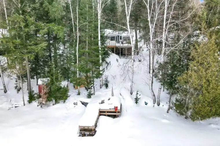 The one you’ve been waiting for on Redstone Lake-one of the most prestigious and sought-after lakes in Haliburton. This fully renovated, turn-key waterfront property blends modern comfort with timeless cottage charm.Offering 2 bedrooms plus 2 additional flex spaces ideal for a home office, gym, or kids’ playroom, the cottage was completely renovated in 2020 with quality finishes throughout. The high-end kitchen features granite countertops and an island, perfect for everyday living and entertaining.Enjoy coveted northwestern exposure with stunning sunset views, an oversized primary bedroom with direct access to the expansive wrap-around deck (2024), and a gently sloping lot leading to deep water off the dock-ideal for swimming and boating. Unwind in your private sauna (2021) and take full advantage of the exceptional outdoor living spaces.Major updates include: roof (2022), windows (2020), electrical panel (2020), hot water tank (2024), water system (2023), outdoor lighting (2025), and wrap-around deck (2024).A rare opportunity to own a beautiful cottage on one of the most coveted lakes at a very desirable price!