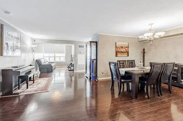 SPACIOUS 2+1 BEDROOM, 2 BATHROOM Condo with PARKING*** Excellent split-bedroom layout with second ensuite bathroom + ample closet space in primary bedroom, hardwood floors throughout with custom professional “venetian stucco” wall design, ceramic tiled kitchen/bathrooms, updated kitchen counter with under-mount double-sink, stainless steel appliances, formal dining room area with plenty of space throughout to enjoy! EXCELLENT AMENITIES include swimming pool, gym, bowling, party/meeting room, security system/guard, visitor parking & more! ***(UTILITIES INCLUDED: HEAT, HYDRO & WATER)***