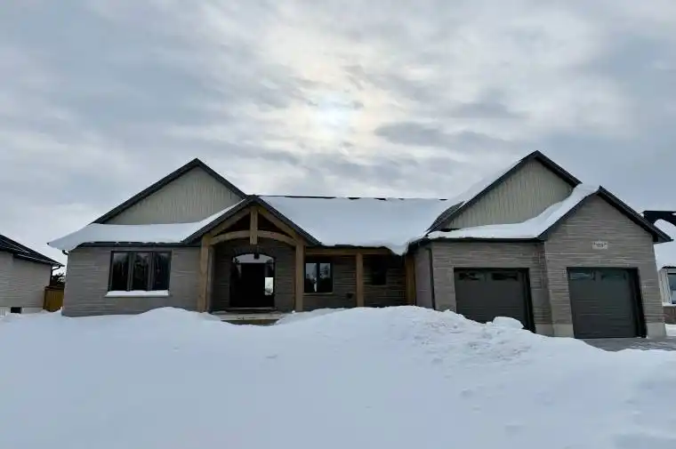Is the lakeside lifestyle calling you home to Kincardine? If you are seeking a more peaceful way of life where the pace is slower and the sunset views never disappoint, you won’t want to miss this awe-inspiring bungalow by Bogdanovic Homes in the highly sought-after Crimson Oak Valley subdivision. Located just south of Kincardine, showcasing executive style residences on estate sized frontages, each home has unique features and the finest of finishes. This spectacular 2275 sq ft bungalow features a welcoming front porch with timber frame accents, instantly exuding warmth and charm. The elegant stone and brick exterior adds to the stylish and captivating curb appeal. Step inside and be instantly “wowed” by the grand foyer, stunning tile and hardwood flooring, and large windows creating bright open living spaces. The great room features a stacked cultured stone natural gas fireplace, 10′ tray ceiling and is open to the gorgeous kitchen complete with light quartz counters, warm neutral cabinetry, ample bar seating and a walk-in pantry of your dreams! The spacious dining area overlooks the backyard, and enjoys a walk-out to the covered back porch, providing the perfect flow for entertaining. The primary suite is secluded at the back of the house and includes an ensuite with custom tile and glass shower, and a sizable walk-in closet. At the opposite side of the house are 2 additional bedrooms, sharing a spacious hall bathroom. Completing the main floor is the convenient laundry/mudroom with custom built-in cabinetry and bench seat, offering access to the double attached garage. The full basement with almost 9′ ceilings provides a blank canvas for your imagination, and can be finished by the builder upon request. Completing this desirable home is the concrete driveway, walkway, sod, fully fenced backyard. A short stroll away is a gorgeous sand beach and the alluring natural beauty of Lake Huron! Embrace your new lifestyle and all that Kincardine has to offer!