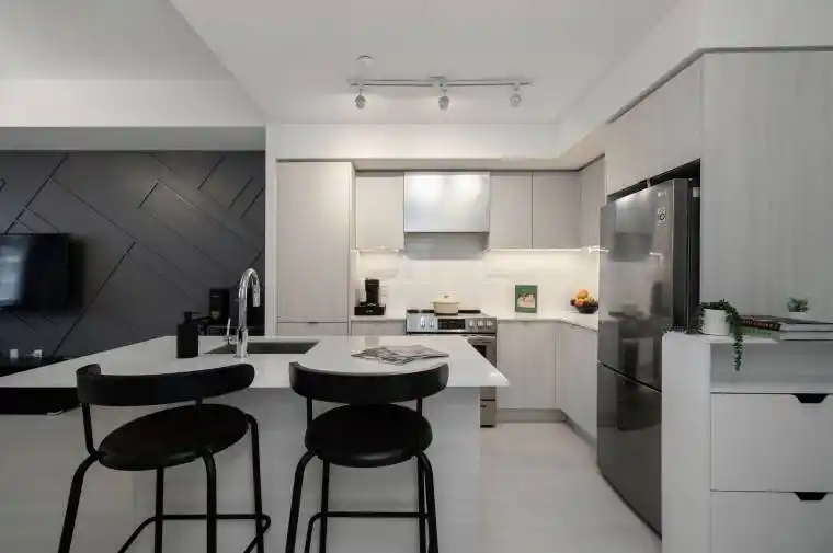 Set within Etobicoke’s Valhalla community, Townhouse 108 at 30 Gibbs Road offers a rare multi-level layout. Arranged across three levels, this three bedroom plus den home is designed with clear separation between living, working, and sleeping spaces, supporting both everyday use and long-term flexibility. The main living level is open and light-filled, with floor-to-ceiling windows and approximately 11-foot ceilings that enhance the sense of openness throughout. Quartz countertops, stainless steel appliances, and clean-lined finishes define a kitchen that integrates seamlessly into the living space and is well suited to both daily use and hosting. The second floor includes two well-proportioned bedrooms, a versatile den suited to a home office or additional living area, and second-floor laundry. The third-floor primary retreat features a walk-in closet and an ensuite bath, offering privacy and separation from the rest of the home. Street-level access reinforces the townhome experience, while a same-floor storage locker adds practical convenience. Residents have access to a full suite of amenities, including a fitness centre, yoga studio, rooftop terrace, party lounge, guest suites, children’s play area, and 24/7 concierge service. Located close to transit, parks, top-rated schools, and major highway connections, this home offers a well-considered layout in one of Etobicoke’s most accessible communities.