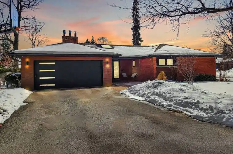Princess-Rosethorn | 1 Farningham Crescent, Etobicoke.One of Etobicoke’s most established and architecturally cohesive neighbourhoods, Princess-Rosethorn is defined by its well-preserved, same-vintage bungalows and tree-lined streets. This fully renovated (2019) mid-century bungalow was conceived to complement its original character while bringing every system, surface, and finish fully into the present.The main floor features wide-plank white oak engineered hardwood, a custom open-riser staircase with solid oak treads, edgeless glass panels and hand-forged steel banister, and a foyer skylight that draws natural light deep into the home. The open living and dining area is notably generous for a home of this vintage, anchored by a gas fireplace and connected to the side-yard deck via sliding doors. The kitchen was designed for the serious home chef – custom cabinetry, expanded pantry, waterfall Caesarstone island, Dacor professional appliances including a 36″ 6-burner range, commercial-grade hood, and European Franke fixtures including pot filler, oversized sink and designer faucet. Pre-plumbed for an espresso machine. Primary ensuite expanded to include a full double shower in large-format marble-look tile. Bedrooms are generously sized for a bungalow of this era.The fully rebuilt basement is divided into two distinct spaces with laundry and bathroom between them. The first features a complete kitchen with island, stainless hood and waterfall Caesarstone countertops, opening to a dining and seating area – self-contained and well-suited for multigenerational living, a nanny suite, or potential future rental conversion. The second is a bright, space currently used as a living room and workspace, with gas fireplace.Schools: Princess Margaret Jr PS | John G. Althouse MS | Martingrove CI | St. Gregory Catholic. Transit: Kipling GO, Islington Subway, TTC. Highways: 427/401/QEW/Gardiner. Airport: ~10 min to Pearson.