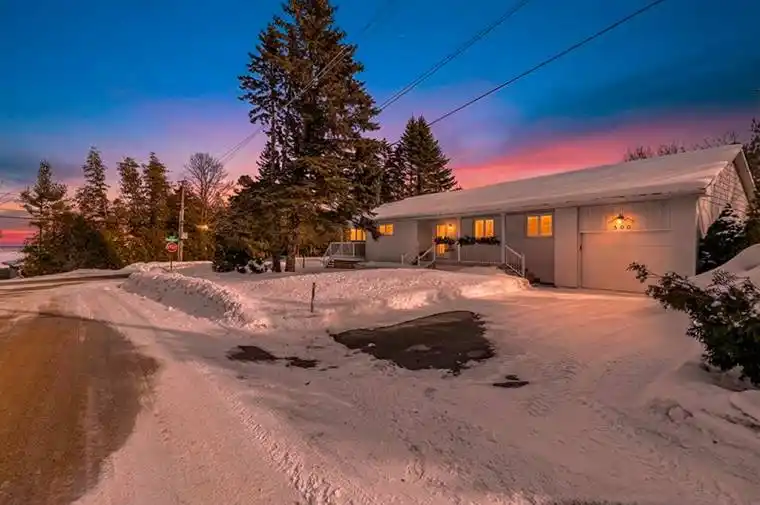 Perfectly positioned at the corner of Grandview Drive and Helen Street, this beautifully renovated raised bungalow captures the serene essence of life near the Bay. The main floor is tastefully decorated and flooded with natural light, featuring an updated kitchen, modern lighting, and a spacious layout with plenty of room for entertaining. With three bedrooms on the main level and a spectacular three-season sunroom specifically designed to watch the waves, this home is as functional as it is inviting. The fully finished lower level provides an expansive footprint perfectly suited for a growing family, multigenerational living, or a premium guest suite. This updated space features its own kitchen, bathroom, bedroom, and two distinct activity areas offering ultimate flexibility to suit your lifestyle. A convenient walk-up to the mudroom ensures easy access and organization, making the lower level feel like a natural, private extension of the home. Outside, the property boasts a generous private yard, offering a secluded oasis for outdoor entertaining, gardening, or family activities, all complemented by an attached garage and storage shed. Beyond the visible beauty, this home features high-performance upgrades for year-round comfort and peace of mind. The lower level is fully optimized with spray foam walls, an insulated floor, and radiant heating in the bathroom. For superior sound dampening and thermal efficiency, the ceilings feature 6″ Rockwool insulation and 5/8″ drywall. Completing these “hidden” essentials is an electrical system that features a dedicated generator panel and exterior plug for ultimate reliability. With its prime location, water views from many vantage points, and extensive recent upgrades, this property is a turn-key opportunity to enjoy a sophisticated lifestyle near Georgian Bay.