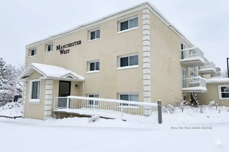 Experience the best of Lake Huron living in this spacious two-bedroom condominium within Southampton’s desirable Manchester West building. As one of the largest units in the complex, this freshly painted, north-facing home is bathed in natural light, creating a warm and cheerful atmosphere throughout the open-concept floor plan. The functional kitchen features classic white cabinetry and ample workspace, while the living and dining areas open through patio doors onto a private, double-length balcony making it the perfect spot for your morning coffee. The primary bedroom features a private four-piece ensuite, and the versatile second bedroom is ideal for guests or a home office. Complete with a second four-piece bathroom and in-suite laundry, this home offers a truly maintenance-free lifestyle. The comprehensive monthly fee covers heat, hydro, water, and all exterior upkeep. Residents enjoy exclusive access to an in-ground swimming pool, BBQ pavilion, common room, and secure storage for bikes and lockers. Perfectly situated just steps from downtown amenities and stunning sandy beaches, this well-cared-for unit is an ideal choice for a permanent residence, a seasonal retreat, or a turnkey investment.