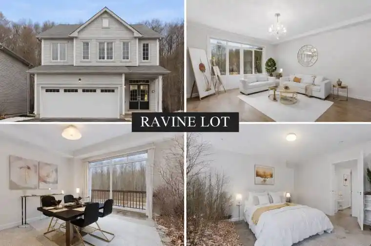 Welcome to 8707 Chickory Trail, a stunning family home on a premium ravine lot with no rear neighbours, offering rare privacy in one of Niagara’s most desirable South End neighbourhoods. This home features 3 spacious bedrooms, 2.5 bathrooms, very large room sizes, a bright open-concept layout, and a spacious oversized kitchen ideal for family living and entertaining. Enjoy the convenience of upper-level laundry and abundant natural light throughout. The basement offers large windows and rough-in for a bathroom, providing excellent in-law suite potential. Additional highlights include a double-car garage and driveway parking for four vehicles. Located minutes from top-rated schools, parks, trails, Costco, Walmart, shopping, restaurants, Cineplex, major highways, and the upcoming Niagara Health Hospital. A rare opportunity combining luxury, space, privacy, and location-perfect for families.