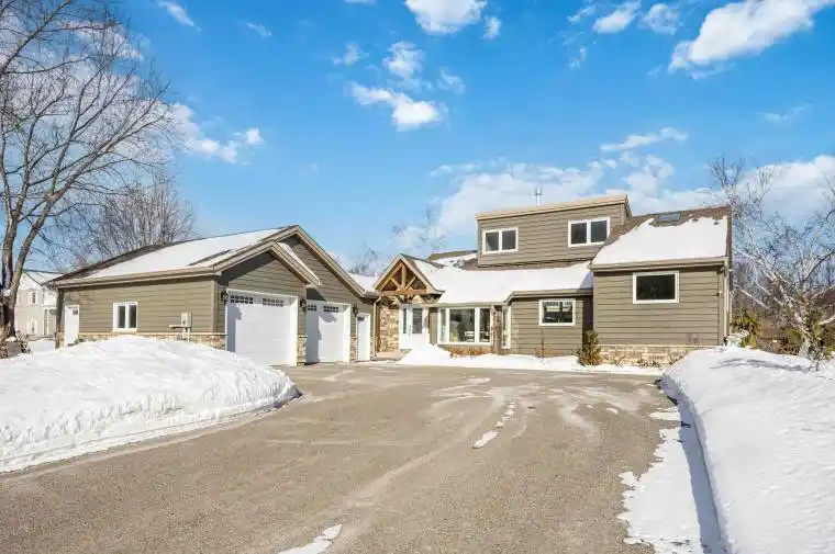 Visit REALTOR website for additional information. Discover this beautifully updated waterfront retreat offering direct canal access to Lake Simcoe within minutes! Ideally situated on a 90 ft x 185 ft lot and walking distance to the sandy beach at Holmes Point, this property blends luxury, functionality, and outdoor enjoyment. Dock your boat at home (approx. 7 ft water depth) or fish for bass, muskie, and pickerel from your own backyard. This 3-bedroom plus loft home has been extensively upgraded in 2024, featuring a custom Fischer kitchen with White & White Oak cabinetry, quartz backsplash and counters, double waterfall island with mini sink, Delta gold touchless faucet, and integrated lighting. Enjoy 7.5″ wide white ash engineered hardwood floors, vaulted ceilings, and a showpiece Enviro S50 Carrera White gas fireplace with quartz wall. Relax in your Hydropool Aqua Sport 19DTAX swim spa & hot tub (warranty to June 2027), surrounded by a privacy-decked lounge area, 20′ x 10′ aluminum pergola, flagstone fire pit, and manicured landscaping with cedar hedging and raised garden planters. A major highlight is the approx. 1,200 sq ft attached heated garage with bar sink, cabinetry, and direct backyard access-perfect for hobbyists or storing lake gear. Additional upgrades include a 22 kW Generac whole-home generator, UV & carbon water filtration system, furnace air sterilizer, natural gas BBQ hookup, Keter composite shed, and fenced yard. Exterior finishes combine cedar, composite siding, and stone for a timeless lakefront aesthetic.