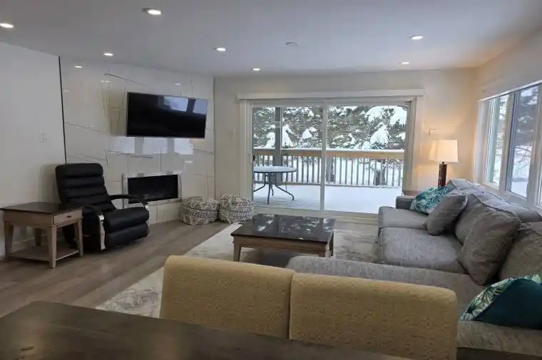 Discover elevated lakeside living in Muskoka at the prestigious Deerhurst Resort, set along the beautiful Peninsula Lake. This fully renovated, turnkey residence has been redesigned from top to bottom with upscale finishes and a refined, contemporary aesthetic. The gourmet kitchen has been completely reimagined with custom cabinetry, bookmatched cultured countertops and backsplash, and a suite of high-end appliances, offering both exceptional performance and timeless style – perfect for entertaining or relaxed everyday living. The spacious open-concept living and dining area features a stylish gas fireplace, premium flooring, updated lighting, and elegant detailing throughout. Step out onto the private deck and enjoy tranquil views within a peaceful setting – an ideal extension of your living space for morning coffee or evening gatherings. Each of the three large bedrooms includes a beautifully updated private ensuite bathroom, finished with spa-inspired fixtures and luxurious touches to ensure comfort and privacy for family and guests. The possibilities are endless. And then there are the many year-round benefits of owning your own piece of Deerhurst Resort: three outdoor pools, hot tubs, one indoor pool, various levels of restaurants catering to all palettes and budgets. From delicious fast food to romantic evening meals – even food trucks at the beach area! There are areas for the young and young at heart to enjoy the water with beautiful sand beaches and deep-water for water skiing, and more. Do you have your own boat? No problem – docking space is available for various lengths of time (at additional cost). Also, axe-throwing and escape cabin experiences right along the History Trail – telling the story of this unique resort which dates from 1896 and goes up to its most recent world event of hosting the G8 in 2010. Offered fully furnished, this exceptional property can be enjoyed as your private Muskoka retreat!