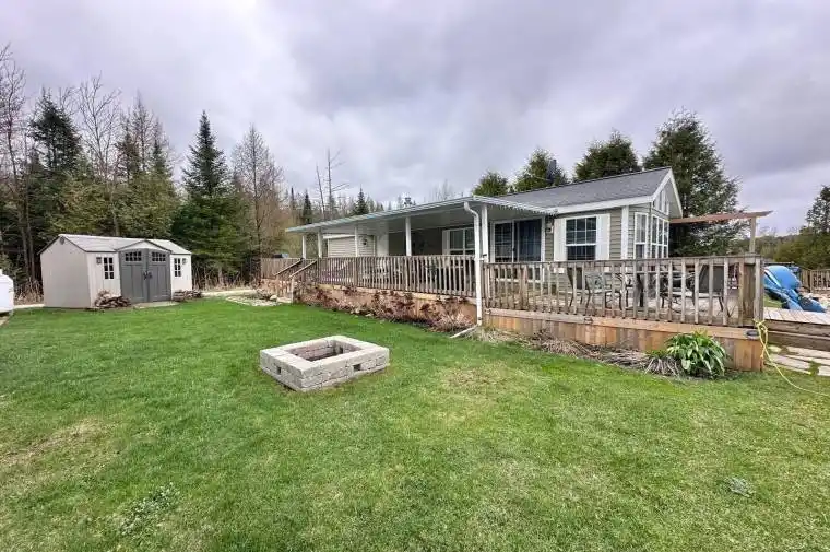 WATERFRONT! Your Perfect Seasonal Cottage Alternative Awaits! Welcome to this beautifully upgraded 2009 Woodland Muskoka mobile home, located in the sought-after Parkbridge Spring Valley Resort. This spacious and bright two-bedroom unit is the ideal getaway, with the resort season running from the first Friday in May to the third Sunday in October. Step into the sun-filled living room, where wraparound windows offer breathtaking views of the lake. The vaulted ceilings throughout create an open, airy feel, enhancing the already generous layout. Enjoy the comfort and convenience of a full washroom with in-unit laundry, and rest easy in the primary bedroom, complete with a large closet and built-in dresser. The second bedroom features bunk beds with full-size single mattresses, perfect for guests or kids. Outdoors, relax under the hard awning or take in the views from the wraparound deck. Whether you’re sipping your morning coffee or winding down in the evening, the private dock invites you to enjoy peaceful moments by the water. Paddle boating, kayaking, canoeing, or catch-and-release fishing, all on a non-motorized lake, makes this a nature lover’s paradise. Spring Valley Resort also offers incredible amenities, including: – Two swimming pools (1 adult and 1 family) – Mini putt & a horseshoes club – A beach and designated swimming lake – Recreation programs for both kids and adults. – Concerts in the park and so much more! Don’t miss this opportunity to own your own slice of seasonal paradise. Avoid the cottage traffic! Spring Valley is an easy drive from Guelph, Kitchener, Orangeville, etc.! Call today to book your private tour! The fees for the 2026 season are $5,635.00. Note: Includes everything but your propane, hydro, and Internet if you choose to install it. There are no additional fees for water, property, taxes, visitors to the resort, etc.