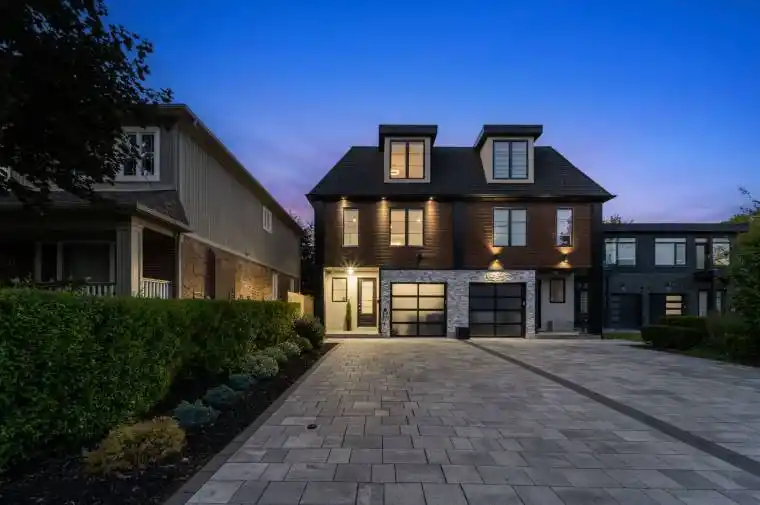 Offering over 4,400 sq. ft. of modern living for just under $500 per sq. ft.! Seldom found and rarely offered, 11B Maple Avenue N sits on a deep 149-foot lot in one of Mississauga’s most prestigious lakeside communities. This expansive semi offers nearly 3,500 sq. ft. above grade and makes a striking impression from the moment you enter, with a private elevator providing access to all floors. You won’t find another home like this in Port Credit. The sun-drenched main floor showcases soaring tray ceilings, wide-plank light oak hardwood floors, and expansive windows that fill the space with natural light. A stunning marble fireplace anchors the living room, setting the tone for both cozy nights in and refined entertaining. The charismatic kitchen is effortlessly functional and designed for connection. Enjoy a large quartz island, high-end appliances, and seamless flow to the dining area. Oversized glass doors lead to a private, landscaped backyard with a wood deck and gas BBQ hookup, perfect for alfresco dining. Above, the primary suite is a true retreat with dual walk-in closets, a spa-like ensuite, and a skylit hallway. Each additional bedroom includes its own walk-in closet and ensuite, ideal for family and guests. The third level adds flexible living space with two more bedrooms and a bright home office. The fully finished lower level features oversized windows, a 3-piece bath, a Finnleo sauna, and rough-ins for a second kitchen and laundry, ideal for a media lounge, home gym, or future rental income suite. Additional highlights include a monitored smart home system, power blinds, EV-ready epoxy garage, and premium finishes throughout. This one-of-a-kind home is superbly located just steps from Port Credit’s vibrant waterfront, boutique shopping, parks, dining, and effortless commuting via GO Transit or the QEW.