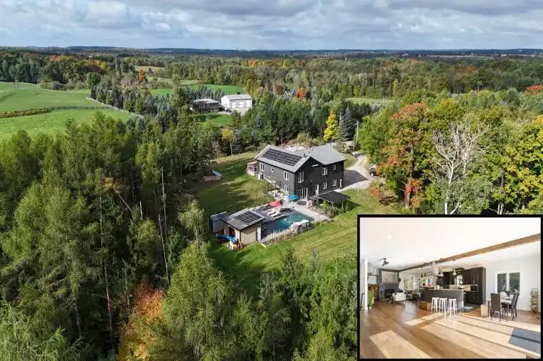 OPEN HOUSE SUNDAY MARCH 8TH 2-4:00. Welcome to 5041 Third Line in the south end of Erin – a custom-built 2017 bungalow set on a private 1.4-acre retreat surrounded by nature. Designed for both everyday comfort and effortless entertaining, this home offers a rare blend of space, privacy, and thoughtful design. The main floor bungalow layout is bright and open, with oversized windows that flood the home with natural light and frame peaceful views of the backyard. With 3 bedrooms, a dedicated office, and 3.5 bathrooms, the floor plan balances functionality with warmth. A striking floor-to-ceiling wood-burning fireplace, ducted into the central air system, adds both character and efficient heat. The kitchen and dining area are made for gatherings, featuring sleek appliances and room for a large family table. The fully finished walk-out basement extends the living space and functions like a second home. Complete with a family room, private office, generous storage, and a separate entrance to the side yard, it’s ideal for multi-generational living, a future in-law suite, or relaxed game and movie nights. Step outside to your own resort-style escape. The landscaped pool with rock waterfall is the centre piece of a backyard designed for both entertaining and quiet moments. Stone interlock lounging areas, a firepit, terraced hardscaping, and mature trees create exceptional privacy and a true connection to nature. Additional highlights include a heated 3-car garage and a peaceful setting that feels worlds away – yet remains just 10 minutes to groceries, shops, trails, and Tim Hortons. Whether you’re looking for a custom bungalow with a walk-out basement, a private property with a pool, or a home that adapts beautifully to changing life stages, 5041 Third Line offers a lifestyle that’s hard to replace.