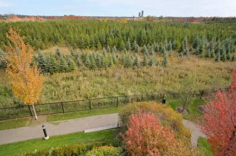 2 bedroom + den open concept corner unit with every window offering views of Clairville Conservation area. 540 hectares of wetlands, valleys, forests, grasslands, and the west branch of the Humber River. The comforts of luxury condo living surrounded by nature. Spacious 1060 SqFt condo, large corner terrace with stunning view, of nature, deer, birds and more! Upgraded kitchen with quartz counters and island with bar seating, stainless steel appliances and ceramic backsplash. 9 foot ceilings and lots of light from the expansive windows. Primary bedroom suite offers double his and hers closets and ensuite bath with glass shower. 2nd bedroom is spacious with lots of closet space, and a great view! Ensuite laundry room with storage, and a locker down by the underground parking space. The building is located close to Bramalea GO station, with easy access to highways 7,407,410 and 427 and near parks, trails, transit, major highways, and all essential amenities. Walk to bus stop and school bus pick up and drop off. Building offers 2 fitness centres, 2 party rooms, pet spa, visitor parking and outdoor bbq area