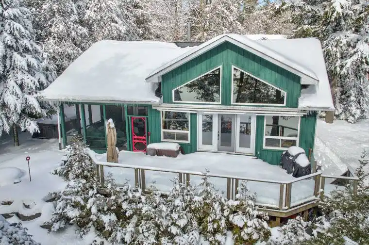 Classy Crystal Lake. This turn-key, custom ICF 4-bedroom, 3-bathroom waterfront home was completed in 2007 and may just have everything you’re looking for. Fully winterized and furnished with top-tier products throughout its 2500 sq ft of living space. A fabulous 0.64 acre lot with exceptional privacy and directly across the road is a private 67 acre forest to explore. A gently sloping pathway leads to a fabulous waterfront setting with a touch of hard-pack sandy beach – yet deep diving off the dock and 105 feet of owned shoreline w/a lovely lakeside change room w/power. Recent upgrades include; landscape stonework, a concrete woodfired pizza oven, an outdoor salt water hot tub, a 5000 lb steel boat lift, a PWC lift, a new dock, a 2-tier sun deck, and custom wood furniture by Artemano. Big lake views with a full SE exposure. All season sunrises, spectacular moonscapes, and 7 PM sun on the dock in the summer- yet only steps away from shade. The open-concept kitchen w/Corian countertops looks directly into an expansive dining and living room setting. Soaring 16ft cathedral ceilings and a natural stone, wood-burning fireplace really set the tone for this spectacular build which creates lots of natural light. Crystal is a spring-fed rock & pine glacial lake with low cottage density. Explore its many bays and over 30 kms of stunning shoreline. Excellent fishing. Easy access to the 5 Points Crown Land multi-use recreational trail system. On water marina. Kinmount and its amenities are 30 mins away. Around 45 mins to Bobcaygeon/Fenelon Falls/Minden. 1 hr to Sir Sam’s Ski Hill. Good cell and internet options. 2.5 hrs from the GTA. This stellar all-inclusive property has too many features to list here. The outstanding attention to detail and the pride of ownership is evident. Above average privacy on a dead-end year-round municipal road that includes a detached garage with an upstairs 3-season games room and 4-pce bath. See the Virtual Tour.