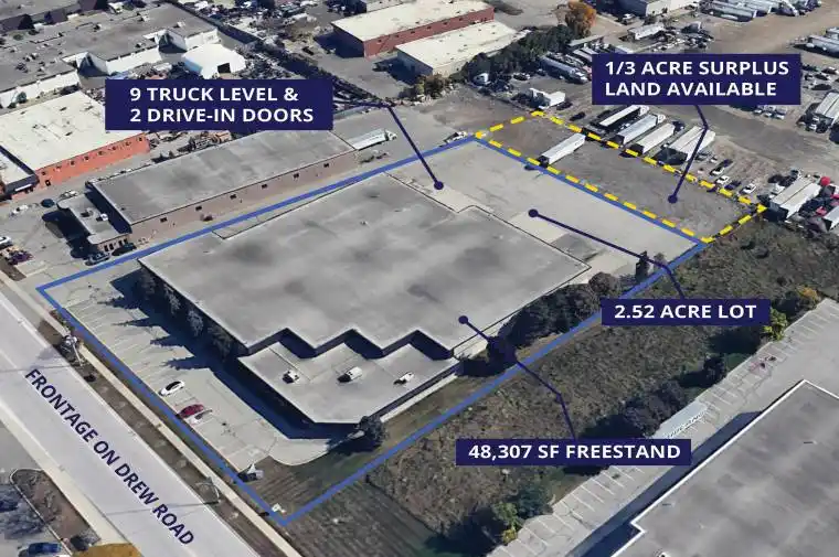 SHORT TERM LEASE OPPORTUNITY! Freestand with approximately 1/3 acre of surplus land (+/- 15 trailer positions) available. White-boxed warehouse. Freestanding building with immediate access to Pearson Airport, major highways, and transit. Recently renovated with upgrades to doors, LED lighting, floors and offices. High dock door ratio: 9 dock doors and 2 drive-in doors. Secured and paved yard with 53′ trailer access. Immediate vacant possession. Ample power (600 amps).
