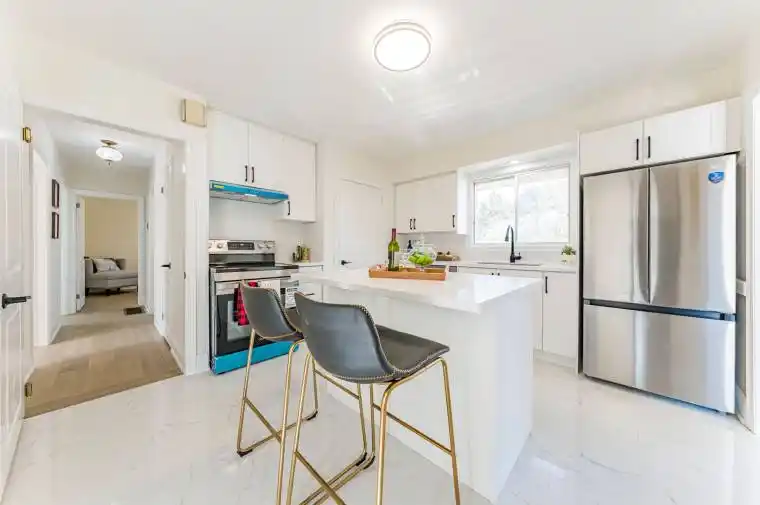 New Renovated & Move-In Ready Detached Home on a Rare Oversized 65 x 120 Ft Lot in Highly Sought-After South Burlington. Featuring modern upgrades with a clean, practical design and quality craftsmanship throughout.The home offers 3 spacious bedrooms and 2 full bathrooms with durable new finishes and a functional family-friendly layout. Major updates include a new roof (2025) and new furnace (2025) for added efficiency and peace of mind. The kitchen features new appliances including Refrigerator (2026), Cooktop (2026), and Dishwasher (2026). A brand-new rear door as separate entrance add convenience and flexibility.Enjoy a large private backyard with children’s play area, perfect for family living and entertaining. The extra-long driveway accommodates up to 8 vehicles, a rare feature in this neighbourhood.Excellent South Burlington location within walking distance to elementary and secondary schools, public transit, and the GO Station, with quick access to highways, bike paths, shopping, parks, and everyday amenities.