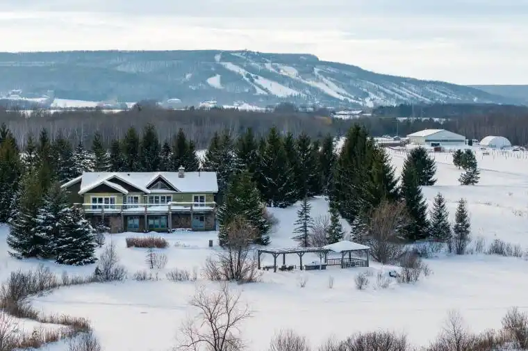 Set across 95 breathtaking acres, this extraordinary equestrian estate offers a rare opportunity to live in harmony with nature while remaining moments from the best of Southern Georgian Bay. Just minutes from downtown Collingwood, steps to Osler Brook Golf Club, and a short drive to Osler Bluff Ski Club, the property seamlessly blends rural tranquillity with year-round recreation. At the heart of the estate, a beautifully crafted custom log bungalow with full lower walkout captures a warm, timeless elegance, with interiors designed to welcome natural light and frame peaceful views of the surrounding landscape. Purpose-built for the equestrian lifestyle, a 14,000 sq. ft. heated barn with nine stalls and an indoor riding arena anchors the property, complemented by outdoor paddocks, open hay fields, and over 30 acres of forested trails-ideal for riding, walking, and quiet exploration. Sweeping vistas toward Osler Bluff complete the experience, creating a setting that feels both expansive and deeply personal. This is more than a home-it is a way of life, where mornings begin in nature, afternoons are spent riding or exploring the land, and evenings return you to comfort, privacy and connection. A truly rare offering, this estate invites you to slow down, breathe deeply and embrace the beauty of life lived outdoors, without sacrificing proximity to golf, skiing and the vibrant community of Collingwood.