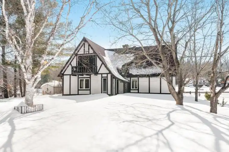 Top 5 Reasons You Will Love This Home: 1) With 75′ of waterfront and direct access to Georgian Bay, this is true shoreline living, set along a protected channel, your boat stays sheltered from prevailing winds while still enjoying quick access to open water and the kind of sunsets people travel hours to experience, to top it all off, you also have access to two sandy beaches within walking distance 2) Almost half an acre in a rural setting gives you breathing room and long-term value, with no direct neighbours across the street, adding a level of privacy that new subdivisions simply cannot offer, yet you are still within close proximity to Highway 400 for an easy commute 3) The expansive great room serves as the heart of the home, highlighted by oversized windows, a vaulted ceiling, built-in bookshelves, and a fireplace that beautifully anchors the space as natural light pours in, while the primary bedroom offers serene water views so you can wake up to Georgian Bay every day 4) Fully renovated main level bedroom complete with a wet bar and centre island creates the perfect in-law setup or separate overflow living space when guests arrive, along with a main level laundry room for easy convenience 5) Peace of mind comes with the roof, furnace, and air conditioner already replaced, complemented by efficient European windows throughout the main level bedroom addition, as well as four updated windows flanking the fireplace in the great room, while a detached garage and powered auxiliary storage and workshop building provide plenty of space for tools, toys, and projects. 2,602 fin.sq.ft.