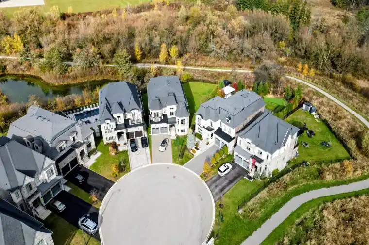Welcome to 56 Ria Court – Ultimate Ravine Retreat in the Prestigious Castles of King!Tucked away on a quiet, exclusive court, this spectacular estate sits on one of the largest ravine lots in the community – over 12,400 sq. ft. Lot of Resort-style privacy with a massive backyard that widens to 120 ft across the rear. A true showpiece offering 6,900+ sq. ft. of refined living space (including a full walk-out lower level), this residence combines timeless elegance with modern luxury.Step inside to soaring 10′, 11′ & 14′ ceilings, a grand open layout, and exquisite craftsmanship throughout. The main level features a designer chef’s kitchen with walk-in pantry, servery, and ravine views; an oversized dining area perfect for entertaining; and a stunning family room with gas fireplace and custom detailing. The elegant living room with 14′ ceilings creates an unforgettable first impression.Upstairs, you’ll find four private ensuite bedrooms, each thoughtfully designed, plus a serene primary suite with dual walk-in closets, his & hers spa-inspired baths, tray ceiling, and fireplace.The walk-out lower level feels like its own private retreat, complete with a full kitchen, guest bedroom, 3-piece bath, and direct access to the future pool-sized backyard oasis.Additional highlights include a main floor office with coffered ceiling, custom mudroom, second-floor laundry, and a 3-car tandem garage. No sidewalk, premium curb appeal, and an unbeatable location just minutes to top schools, boutique shopping, highways, and all modern amenities.A rare opportunity to own one of King City’s most coveted court-lot estates – where everyday living feels like a private resort.