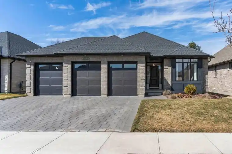 Triple car garage, stunning timber-frame pergola, and nearly 1,600 sq ft of bright bungalow living – welcome to one of Mt. Brydges’ most enjoyable places to settle and call home. The heart of the home is beautifully designed and anchored by an accent fireplace and large windows overlooking the backyard. The kitchen is well appointed with gas range, stainless steel appliances, quartz countertops, large island, and walk-in pantry – the kind of space where family dinners stretch a little longer and guests naturally gather. The main floor also features 2 bedrooms, including a spacious primary retreat with walk-in closet and private ensuite featuring a tiled glass shower. The second bedroom enjoys beautiful morning sunshine and convenient cheater access to the main 4-piece bath. The finished lower level offers plenty of room for movie nights, games, or a place for the kids to spread out with friends. Two additional bedrooms provide flexibility for family, guests, or hobbies. Bedroom three includes a large window and walk-in closet, while bedroom four – currently used as an exercise room – could easily be finished with French doors and a few final touches. Car enthusiasts and hobbyists will love the triple car garage with epoxy floors and rare fourth roll-up door providing direct access to the backyard. The 12′ x 10′ pad creates space for trailer storage, a wash bay, or your next weekend project. Out back, the yard becomes a private retreat as the surrounding foliage fills in through the summer months. The timber-frame pergola creates a beautiful outdoor gathering space, perfect for relaxing evenings or hosting friends and family. Fire up the wood-burning pizza oven, stretch out under the shade, and still enjoy plenty of room to add a pool or expand your gardens. When the greenery fills in, you might just find yourself pausing for a moment and thinking – who wouldn’t want to stop and enjoy that view? It’s the kind of place that feels even better in person.