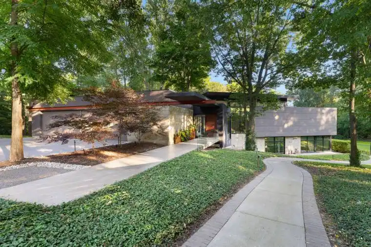 Architectural majesty and artistic risk define luxury for this modern bungalow estate in the charming township of Fonthill. Emerging from a 2.9 acre property populated by picturesque, Carolinian trees, this modernly unique one story creation with full walkout and floor to ceiling curtain wall windows, fuses a designer eye with an environmentalist’s appreciation for natural integration. Structured with steel frame construction, and offering in floor heating via boiler and concrete floors on both main and lower levels, this mansions elite finishes, set against the views of forested privacy, present pleasurable pastoral perspectives and authentic tranquility, inside and out. Features include 16′ ceilings in main living area; specialty imported glass porcelain tiles; engineered hardwood; fully automated light and sound systems by Crestron Products; surround sound theater area with power drop down screen; wine and artisanal meat cellar; enormous upper and lower designer kitchens with quartz stone countertops; three plus one spacious bedrooms; main floor glass walled office; master ensuite with oversized shower; and customized built ins throughout for exceptional storage capacity. The sauntering transition to resort worthy outdoor amenities is just as dazzling, with walkouts that seamlessly flow into a heated saltwater pool area with feature stone wall, outdoor gas fireplace, cedar clad washroom and change rooms. For the luxury car enthusiast, and with 400 amp electrical service available, enjoy the recently built 2600sq.ft showcase accessory garage(detached) that complements an oversized four car garage attached to the home. With approximately 5400 sq. ft of fully finished and fully serviced living space conceptualized to exploit every possible vantage point of this incredible landscape, this estate sets a new standard as the epitome of luxury listings.