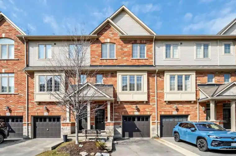 Bright and spacious, beautifully upgraded Branthaven luxury townhome located in the desirable Millcroft community. This home offers 3 bedrooms and 2.5 bathrooms with a functional and stylish layout. The main level features a versatile third bedroom with a 4-piece bathroom, convenient inside access to the garage, and a walkout to the private backyard wooden deck. The second level offers 9-ft ceilings and an open-concept living and dining area with hardwood floors and pot lights, creating a bright and welcoming space. The spacious kitchen includes a dinette area, centre island, stainless steel appliances, granite countertops, and extended cabinetry, with a walkout to an elevated private deck-perfect for entertaining or enjoying morning coffee. Convenient third-level laundry includes a front-load washer and dryer. The upper level also features an updated bathroom with a separate tub and shower, upgraded lighting throughout, and generous bedroom space. Wood staircases, engineered hardwood flooring, and the main level deck were updated, along with an upgraded powder room vanity. The home backs onto a private, treed common area, providing added privacy and a peaceful setting. Low condo road maintenance fees. Situated in Burlington’s highly sought-after Millcroft neighbourhood, known for its tree-lined streets, executive homes, and the renowned Millcroft Golf Course. Close to top-rated schools, Tansley Woods Community Centre, shopping, restaurants, and with easy access to Highways 403, 407, and the QEW, Appleby GO for convenient commuting to Toronto, Oakville, and Hamilton.