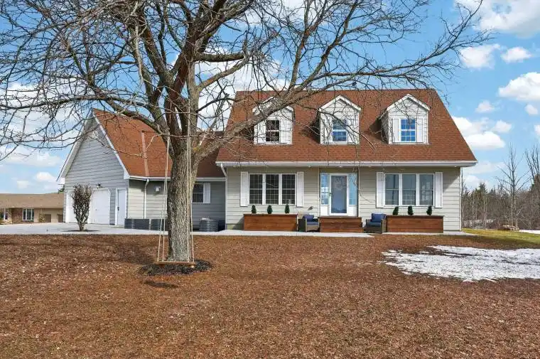 Set on a picturesque 0.736-acre lot in Thornton, this spacious family home offers privacy, scenic views, and room for your family to truly settle in. Surrounded by rolling fields and mature greenery, the property provides a peaceful backdrop while still being close to town amenities. Inside, the home features 4+1 bedrooms and 4 full bathrooms, offering plenty of space for a growing family or multi-generational living. The living room is warm and inviting with a classic wood-burning fireplace, while the family room offers a second fireplace and a walkout to the 3-season sunroom, creating the perfect place to enjoy your morning coffee or unwind while taking in the views. The kitchen is thoughtfully designed with ample cabinetry, high-end appliances, and a pantry, along with a charming chalkboard wall to help keep the household organized. A formal dining room sits just off the kitchen, offering a dedicated space for family dinners, holiday meals, and larger get-togethers. A main floor bedroom provides excellent flexibility-ideal for guests, those who prefer to avoid stairs, or as a bright and inspiring home office overlooking the surrounding landscape. Upstairs, the oversized primary bedroom offers plenty of room to relax, complete with double closets and a recently renovated 4-piece ensuite featuring heated floors, a frameless glass shower, and dual shower heads. Two additional generously sized bedrooms share a well-appointed 3-piece bathroom, completing the upper level of this spacious family home. The lower level extends the living space with a large rec room, perfect for movie nights or family gatherings, along with a fifth bedroom and a generous 3-piece ensuite with heated floors, making it an excellent retreat for guests or teens. Step outside to a backyard designed for both relaxation and entertaining. Enjoy evenings in your swim spa overlooking open fields or host friends and family on the newer deck, all while taking in the peaceful rural setting.