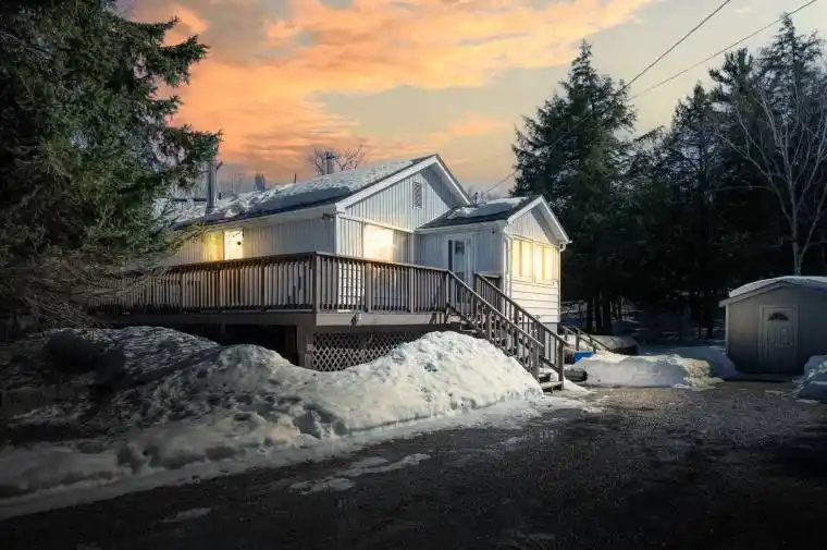 Welcome to 2 Deep Bay Drive in the Bayview area of Carling. Set on a nicely landscaped level corner lot with mature trees this cozy home is ideal as an affordable cottage getaway or a comfortable four- season residence. The bright living room features oak flooring, a WETT -certified Elmira wood stove and a walkout to a spacious L-shaped sundeck (24’6″ x 9’6″ and 11′ x 8′) – perfect for relaxing or entertaining. The recently renovated eat-in kitchen offers updated cabinetry and includes an electric fridge and gas stove. The home offers three bedrooms and a four-piece bathroom. The basement provides a recreation room, laundry and utility area and a new propane furnace ensures efficient year-round heating. Two sheds offer ample storage. Located approximately 250 meters from a beautiful association beach with legal access to this beach and five additional beaches and just 15 minutes from Downtown Parry Sound this well maintained property offers privacy, practical updates and excellent access to the outdoors.