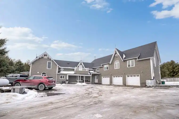 Set on 99 acres of rolling farmland, pasture, and mature woods, this exceptional country property offers space, flexibility, and income potential just minutes from Port Perry and major routes. The 4,000+ sq ft home features two self-contained living areas with a total of 6 bedrooms, 2 kitchens, multiple bathrooms, and main-floor laundry-ideal for multi-generational living, guests, or rental opportunities. A three-car garage with a separate upper-level suite adds even more versatility. The land includes productive hay fields, fenced paddocks, wooded trails, and natural water features, making it perfect for agricultural or recreational use. Equestrian amenities include a large insulated 9-stall barn with indoor arena, heated tack and feed rooms, hay loft, and year-round water. A rare opportunity to own a complete country package offering privacy, functionality, and room to grow. Approx 10 minute drive to Whitby, restaurants, schools, groceries and all other amenities!
