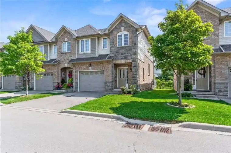 Discover your serene oasis at 40 Dartmouth Gate in the highly desirable, family-friendly Stoney Creek neighbourhood!This spectacular corner townhouse boasts 3 spacious bedrooms plus 4 bathrooms, flooded with natural light and backing directly onto peaceful green space for added privacy and tranquility.Enjoy the fabulous location just a short walk to Lake Ontario, with quick access to the QEW, GO stations, Costco, and an abundance of shopping and amenities.Premium updates and features include:Granite countertops in the kitchen and all bathrooms, Beautiful hardwood floors throughout the main and upper levels, Generous primary bedroom with a walk-in closet and private 3-piece ensuite. Fully finished basement featuring a versatile rec room, 2-piece bath, wet bar, and bar fridge. Expansive outdoor entertainment space with a deck off the kitchen and convenient under-deck storage. Recent upgrades ensure peace of mind and move-in readiness: New roof (2022), New furnace and A/C (2023), New dishwasher (2025), New water heater and water softener. This exceptional home combines modern comfort, thoughtful updates, and an unbeatable location-truly a rare find in Stoney Creek. Don’t miss the opportunity to make it yours!