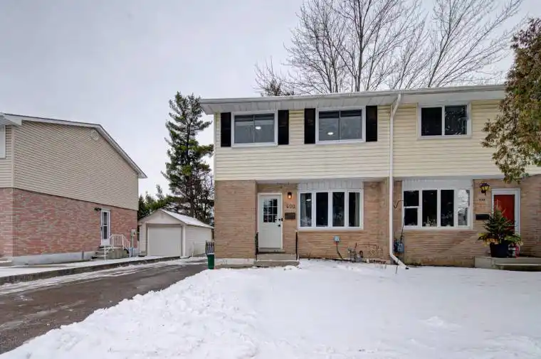 Welcome to 400 Odlum Drive, a bright and exceptionally cared for three-bedroom semi-detached home that perfectly balances modern interior updates with exceptional outdoor privacy. This versatile property is an ideal opportunity for those looking to grow their footprint in the market, investors adding quality to a portfolio, or downsizers seeking a premium, turn-key residence. The property truly distinguishes itself with a rare, park-side setting, backing directly onto the open green space of Cottle Park for a backyard experience defined by tranquility and unobstructed natural views. The expansive rear wood deck offers a premier outdoor living space and an elevated vantage point to enjoy your morning coffee against a peaceful woodland backdrop, complemented by a personal walkway offering immediate access to the park and trails. Inside, the home offers a fresh, contemporary energy with a bright, open-concept flow and a fully carpet-free interior. Bathed in natural light from a large front window and a rear sliding door, the entire main level features constant views of the park-side greenery. The layout transitions seamlessly into an intimate dining area and a modern kitchen featuring crisp white cabinetry, a subway tile backsplash, and high-end stainless appliances. A separate side entrance further enhances the floor plan, providing a layer of functional versatility for a variety of lifestyles. The updated feel continues upstairs with three generous bedrooms and a main washroom featuring a contemporary dual-sink vanity-a sophisticated touch that streamlines the morning routine. For additional space, the finished basement provides a versatile recreation room and an oversized utility area for laundry and storage. This is a premier, move-in-ready opportunity located in a quiet pocket, with a close proximity to schools, parks, all amenities, with effortless access to Highways 401 and 403.