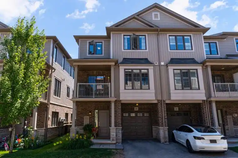 Welcome to 49-377 Glancaster Road, a premium end-unit where modern living meets comfort in this beautifully upgraded 2-bedroom, 1.5-bath townhome. Offered by the original owners, this home is perfect for young professionals, small families, or downsizers ready to settle into a space that truly feels like home. Step inside to a bright, versatile entryway, an ideal spot for a home office, play area, or mudroom complete with a spacious closet and direct access to the garage. Head upstairs to the heart of the home: an open-concept living space with hardwood floors, recessed lighting, and large windows that fill the home with natural light. The upgraded kitchen features quartz countertops and premium KitchenAid appliances, seamlessly connected to the dining and living areas for easy entertaining. Slide open the doors to your private balcony and enjoy your morning coffee and evening sunsets! On the third level, you’ll find two generous bedrooms and a fully renovated main bath with a stunning walk-in glass shower and double vanity. Convenient bedroom-level laundry adds everyday ease, and the custom hybrid blackout blinds throughout the home offer privacy and comfort. With parking for two (garage & driveway), ample visitor parking, and a family-friendly community, this end-unit townhome has everything you need – all nestled in a quiet, welcoming complex close to Kopperfield Park, Meadowlands Power Centre, highway, trails, and more!