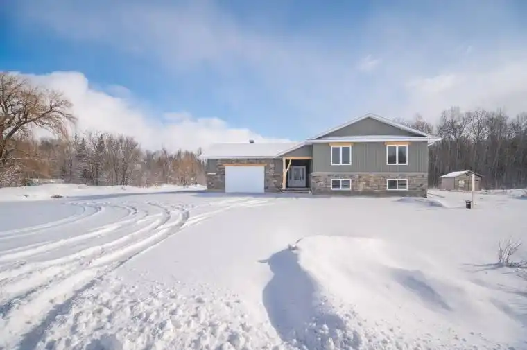 Set on a spacious 1 acre lot just minutes from Pembroke and a short drive to Petawawa, this brand new 3 bedroom, 2 bath home offers the perfect blend of privacy and convenience. Enjoy a peaceful setting with a private back yard with no rear neighbours ideal for relaxing, entertaining or simply taking in the surrounding nature. This thoughtfully designed home features a large entry with closet and access to the large double garage, back yard and the home. Upon entering the main floor living space you immediately notice the cathedral ceilings and large windows allowing for a feeling of spaciousness and an abundance of natural light. The home is designed with the large windows in this space facing the back yard with a view of the treed area. This great open concept living/dining/kitchen area provides tons of room for entertaining family and friends. The kitchen area has stylish, modern 2 tone cabinetry with brushed gold hardware, and a convenient island. The dining area has a sliding glass door to the backyard. 3 bedrooms and 2 baths finish off the main floor with the primary bedroom having a 3 piece ensuite and a walk in closet. Boasting sleek modern finishes such as brushed gold plumbing fixtures in bathrooms & kitchen, pot lights, dining room and island light fixtures and trendy blue vanity in main bath The entire main floor has beautiful , quality Torlys waterproof flooring with an amazing lifetime warranty for gapping & a 25 year warranty for stains, wear & water. The lower level has a drywalled mechanical room & the remainder of the basement is insulated, drywalled and wired for plugs on the bottom half of the walls . Energy efficient building practices have been implemented in this home ensuring that the lower level is warm & comfortable.Built by Dugan Hawkins a highly reputable & trusted builder known for quality craftsmanship and attention to detail backed by a TARION new home warranty means that you can feel confident in every aspect of this home.