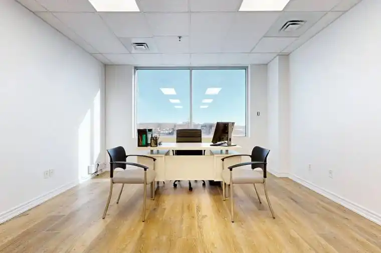Rare Penthouse professional suite (594 SF) at 4168 Finch Ave East. This turn-key office features upgraded neutral laminate flooring, 8ft ceilings, and an enhanced soundproof wall for maximum privacy. Large East-facing windows offer bright views of a high-traffic plaza anchored by Tim Hortons, restaurants, and retail. Situated on a prestigious floor alongside established legal and medical practices, the unit includes a digital building directory, key-access washrooms on every floor, ample underground parking, and elevator access. Unbeatable connectivity-steps to TTC bus stops and minutes to Hwy 401 and 404. Ideal for professional services requiring a high-profile, accessible location.