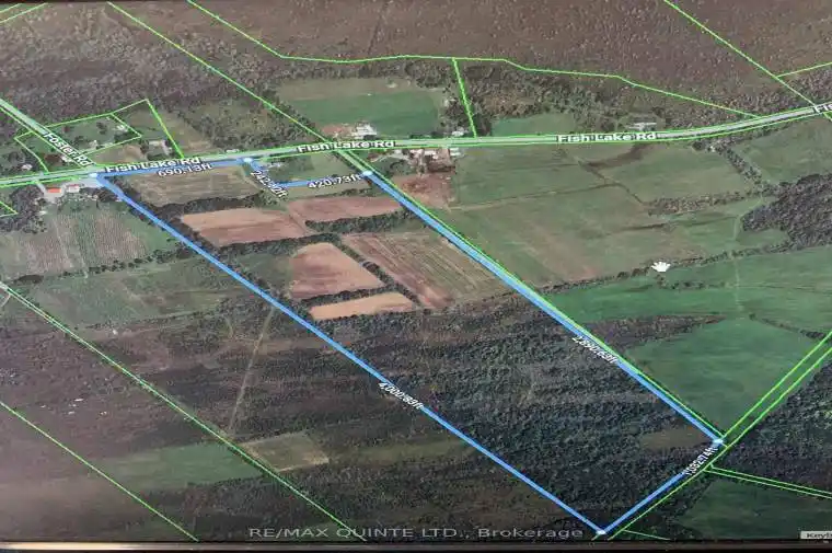 These 77 plus acres of land near the east end of Fish Lake Road are 15 min from Picton & Napanee & 10 min from the 401 & Deseronto. A great location for a new home that would have exceptional south east views with great sunrise views out your back door with sunsets peeking in over your front porch. The land of which 35 plus acres are clear with a great south slope with a winery next door. A stand of hard & soft wood & cedars on balance of land. Space to roam & meditate nature at its finest.