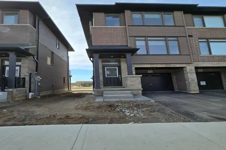Newer end-unit with unobstructed west views! South facing end unit wall provides tons of natural sunlight! Upsize from your condo with 3-storey living. 3 bedrooms upstairs with 2 bathrooms, main floor has ensuite washer/dryer, kitchen, deck, and powder room, plus den on main floor could be used as a bedroom, office, playroom, or mudroom with double french doors to the backyard. 2.5 bathrooms total. Modern kitchen with upgraded stainless steel appliances. Tons of storage; pantry space and garage storage room. Upgrades throughout including no carpet in bedrooms, kitchen backsplash, upgraded appliances, wifi app enabled garage opener, and glass shower door. Great location near Brant Sports Complex, schools, parks, the Grand River, downtown Paris, plaza across the street (restaurants, daycare, medical, Dollarama, Home Hardware, etc) and quick access to Hwy 403 (Commutable to Brantford, Hamilton, Kitchener)! Move-in ready; sit on the deck and watch the sunset views!