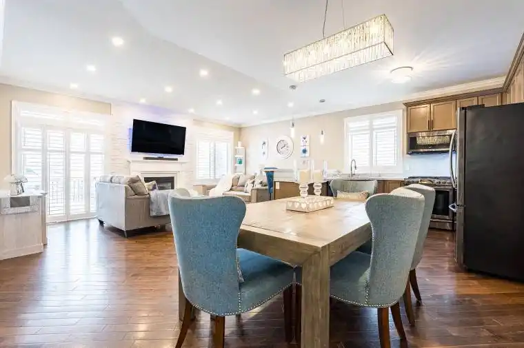 Top 5 Reasons You Will Love This Home: 1) Welcome to this beautifully upgraded home in the family-friendly Marl Lake community of Wasaga Beach where mornings begin on the charming front porch and first impressions truly shine as you step into a bright foyer featuring a decorative glass entry door with soaring ceilings, a statement chandelier, and a front bedroom currently used as a home office with an impressive 14′ ceiling 2) Designed for both everyday comfort and effortless entertaining the open-concept main living spaces feel bright and welcoming with 9’ceilings, crown moulding, and California shutters, while the modern kitchen features quartz countertops, a gas stove and a stylish coffee bar, along with a living room anchored by a stone-surround gas fireplace and patio doors leading to the backyard 3) The fully fenced backyard is a true show-stopper set on one of the largest lots, offering a multi-tier deck, hot tub, above-ground pool with a gas heater, a pool bar, a new gazebo, a 10’x11′ shed, stone pathways, decorative rock landscaping, and an underground sprinkler system, creating an outdoor retreat made for entertaining and everyday enjoyment 4) The main level offers comfortable sleeping accommodations highlighted by a peaceful primary bedroom with backyard views, generous storage, and semi-ensuite access to a 4-piece bathroom with quartz countertops, while a third bedroom provides flexibility for children, guests, or evolving family needs 5) Finished basement adding versatility ideal for extended family or multi-generational living featuring a laundry area, kitchen, fourth bedroom, recreation room with an office space, and a renovated 3-piece bathroom, plus crawlspace storage and complemented by a new roof, a double car garage with inside entry, and a prime location close to beaches, trails, parks, shopping, recreation centres, and easy access to Barrie, the GTA, Georgian Bay, Collingwood, and Blue Mountain. 1,392 above grade sq.ft. plus finished basement.