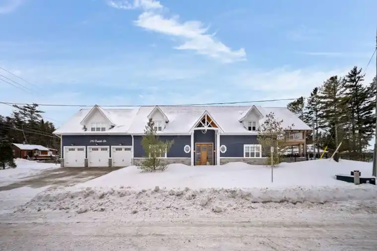 Impressive waterfront living on the shores of Georgian Bay with a westerly view to the water! This newer custom-built home exudes outstanding craftsmanship and superior quality finishes throughout. A thoughtful open concept design creates an ideal beach house retreat within a one minute walk to the sandy shores. Exceptionally well constructed. Over 4,400 sq ft with 4 bedrooms and 4 1/2 baths. Luxury kitchen offers quartz countertops with heated island top and high-end stainless appliances. The dining area provides ample space for the largest of gatherings. Walk-out to a large covered patio with outdoor gas fireplace, BBQ garage w/exhaust fan, and sunset views. The great room boasts soaring ceilings and an oversize gas fireplace with rustic timber mantel. 8 inch oak plank hardwood flooring thru-out. Heated floors. The second level offers a private primary suite with large W/I closet, gorgeous ensuite with steam shower and clawfoot tub and walk-out to secluded covered deck. At the opposite end of the upper hallway are 3 huge family/guest bedrooms each with their own ensuite. Every detail has been considered. ADDITIONAL FEATURES: Triple garage w/heated floor, Outdoor shower room, Full monitored security system, Inground sprinklers, Heated concrete driveway and sidewalks, Tile roof, Spray foam insulation, Gas and water line for outdoor kitchen. Stunning home or cottage within 5 min of Wasaga amenities. Truly a must see!